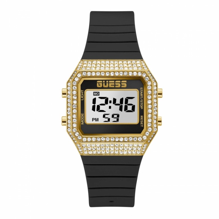 Descrição Relógio Guess Zoom Dourado - GW0430L2 digital para mulher, com caixa dourada em aço inoxidável e bracelete preta em silicone.Veja também... |