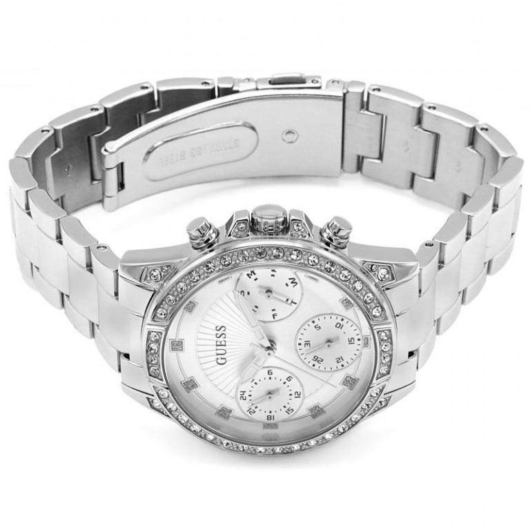 Relógios de pulso feminino Guess W1293L1 Quartz com caixa de aço inoxidável, prata e mostrador de aço inoxidável